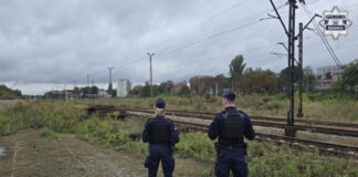 Policjanci patrolują kolejowe tereny